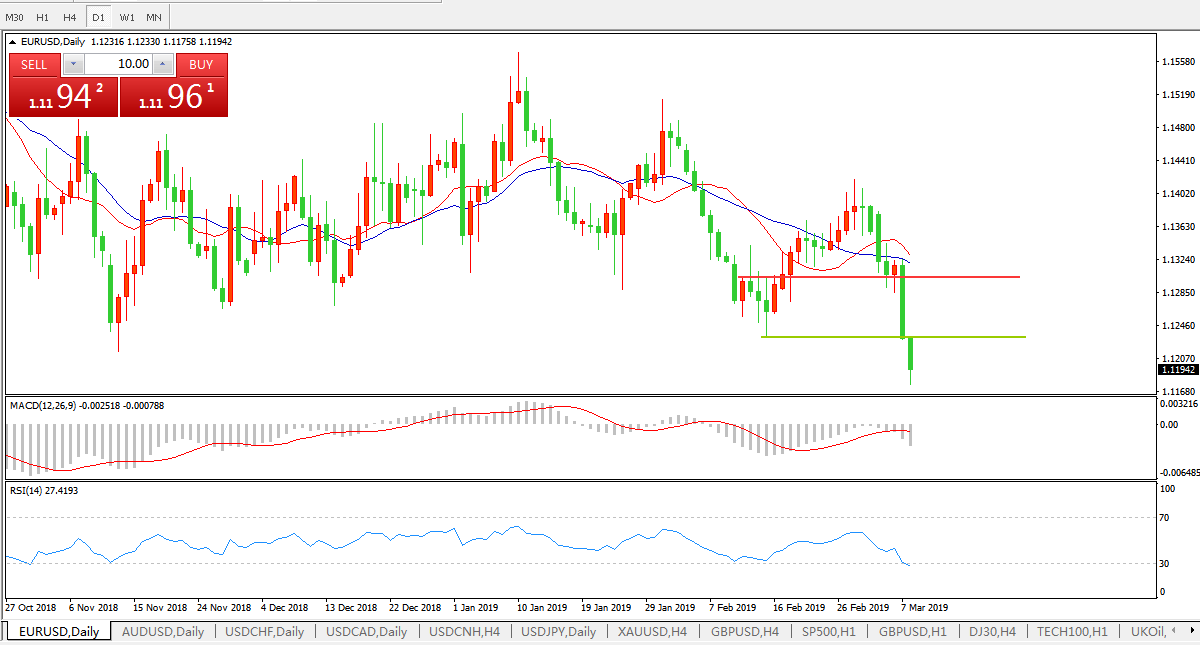 基本面分析:欧洲央行行长德拉基宣布下调经济预测,同时推出新一轮刺激措施以促进经济增长。这是欧洲央行启动量化宽松以来下调预测幅度最大的一次。德拉吉预计今年欧元区经济增长1.1%,比三个月前的预测下调0.6个百分点。他表示,通过实施向银行提供新的贷款、承诺将利率保持在纪录低点更长时间等一揽子方案,央行有意扩大现有的刺激举措。欧元兑美元跌至1.11765美元,为2017年中以来最低。欧元兑美元创下自2018年6月14日以来的最大单日跌幅,当时欧洲央行将加息指引推迟到2019年夏季。分析师称,未来几周欧元兑美元面临跌至1.10的风险。