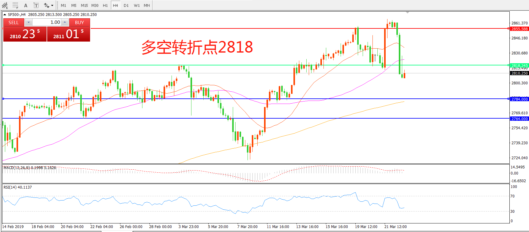 交易策略:在2818之下看跌,目标2784 2764