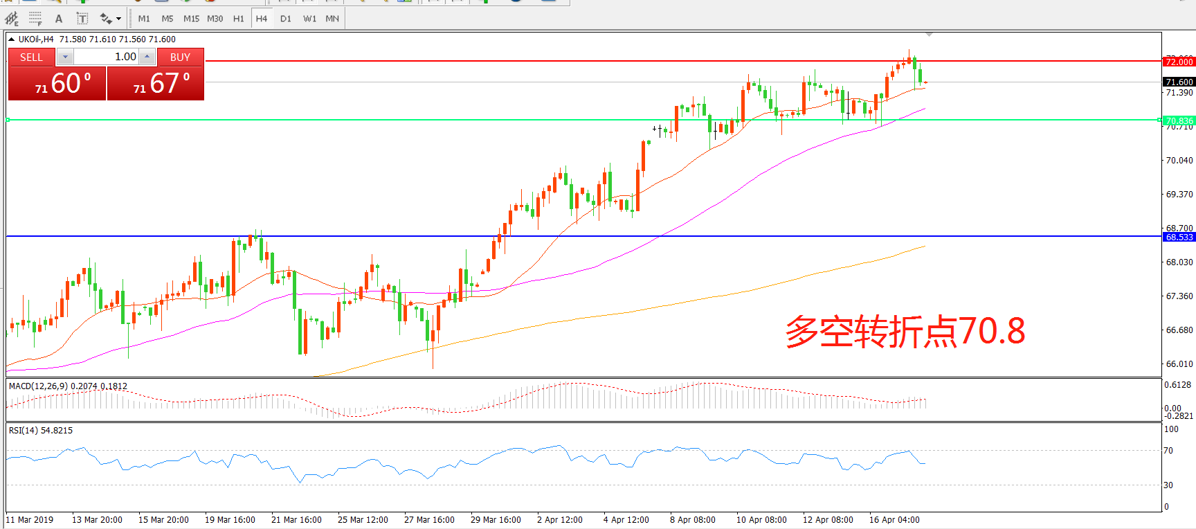 交易策略:在70.80之上看涨,目标72.00    74.50
