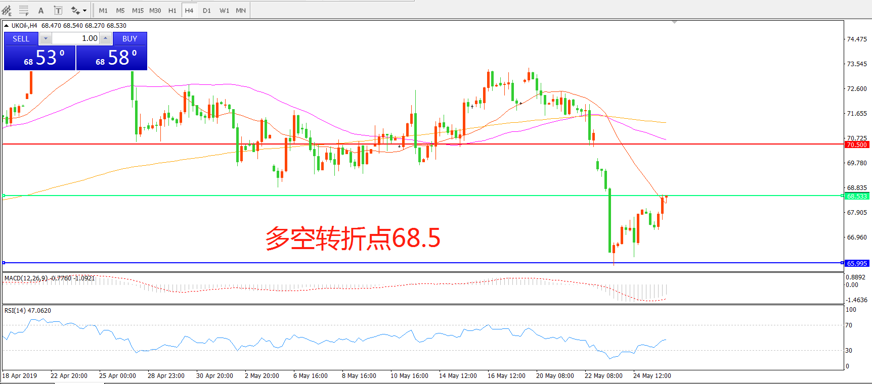 多空转折点:66.00