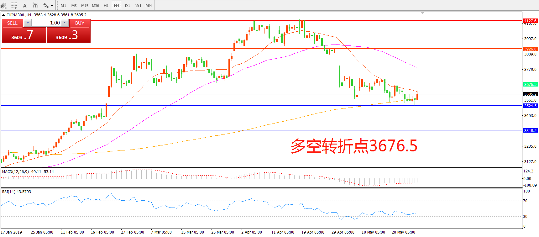 交易策略:在3676.50之下看跌,目标3524.50     3348.50