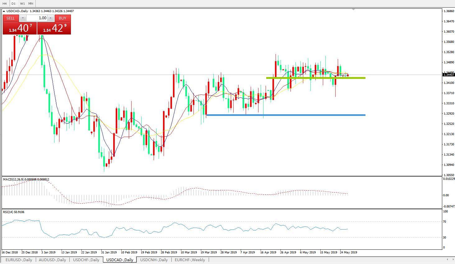 美元兑加元USDCAD 日线图: