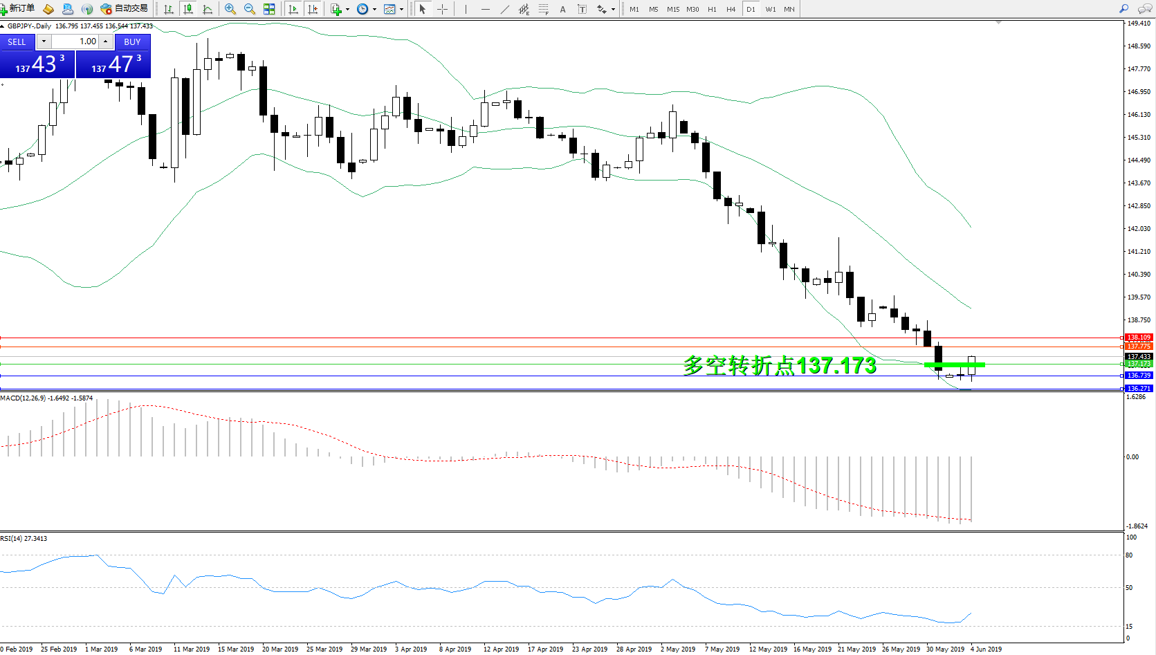 交易策略:137.173上方看涨,目标137.775138.109