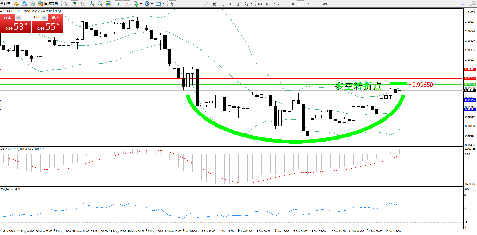美元瑞郎USDCHF——4小时K线图显示: