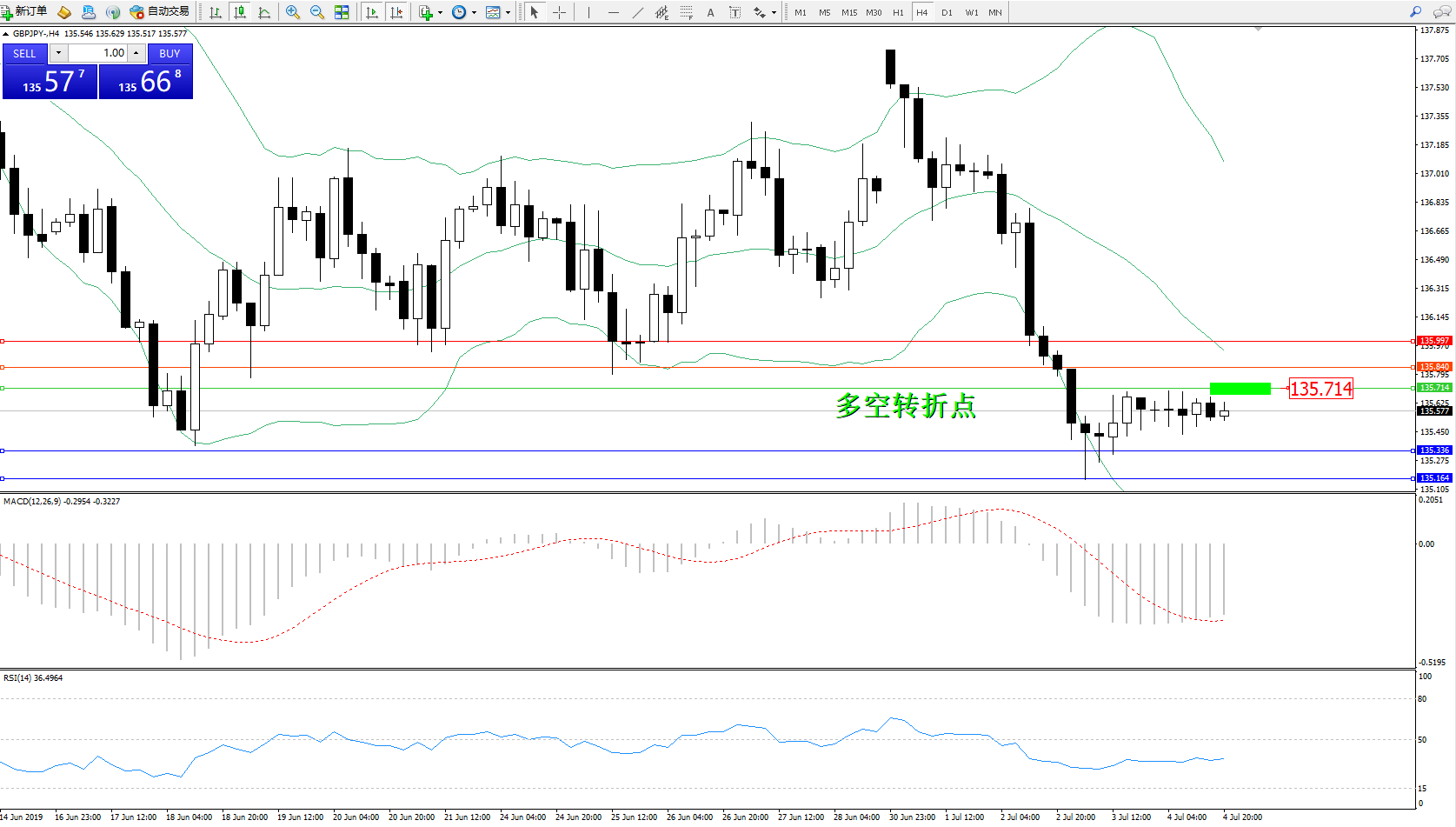 交易策略:135.714下方看跌,目标135.336、135.164