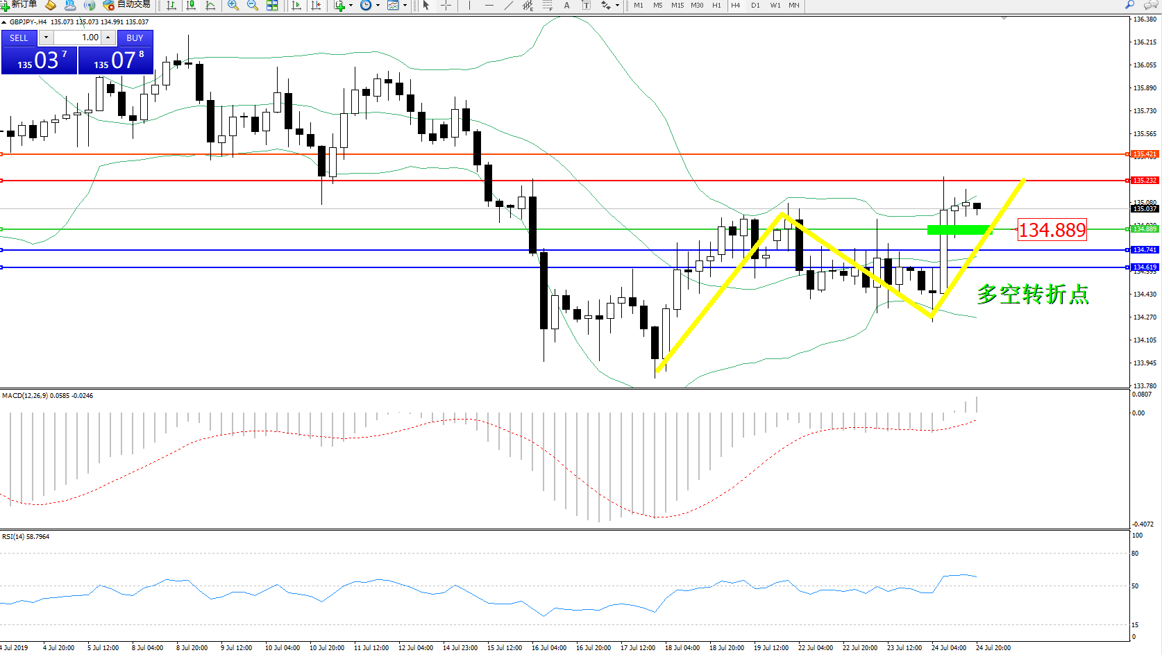 备选策略:134.889下方看跌,目标134.741134.619