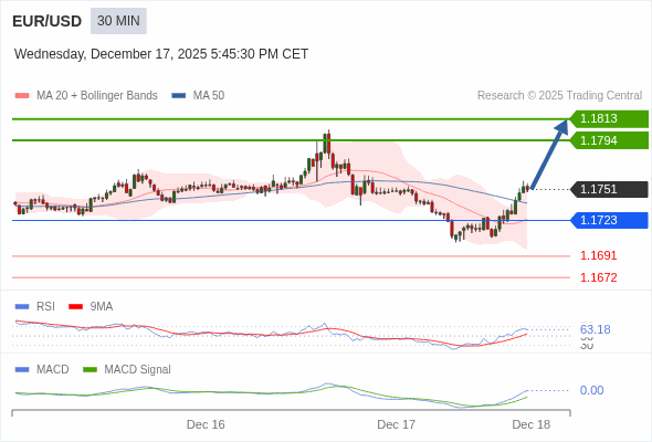 交易策略: 看涨,当 1.1723 为支撑位。