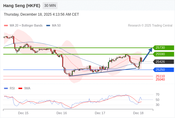 在 25250 之上,看涨,目标价位为 25590 ,然后为 25730 。