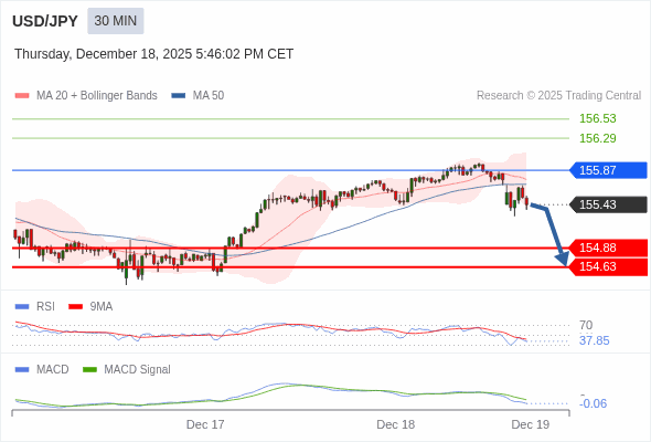 美元/日元 当日内 : 看跌,在 155.87 之下。