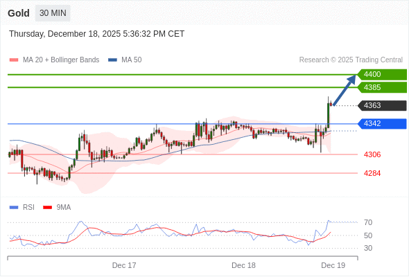 在 4342 之上,看涨,目标价位为 4385 ,然后为 4400 。