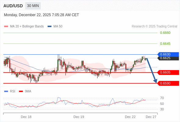 在 0.6630 之下,看跌,目标价位为 0.6605 ,然后为 0.6590 。