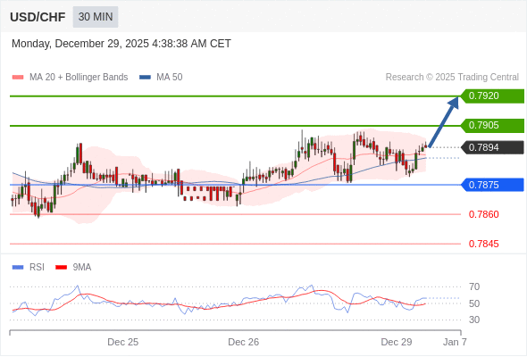 在 0.7875 之上,看涨,目标价位为 0.7905 ,然后为 0.7920 。