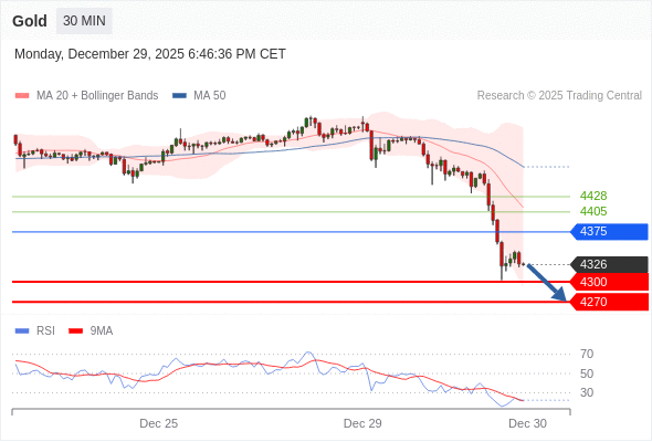 在 4375 之下,看跌,目标价位为 4300 ,然后为 4270 。