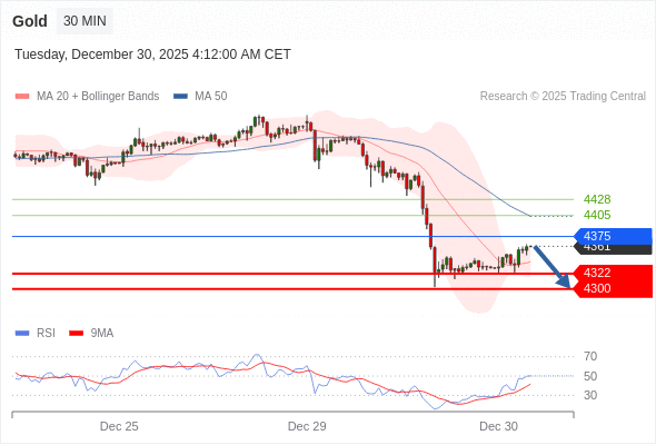在 4375 之下,看跌,目标价位为 4322 ,然后为 4300 。