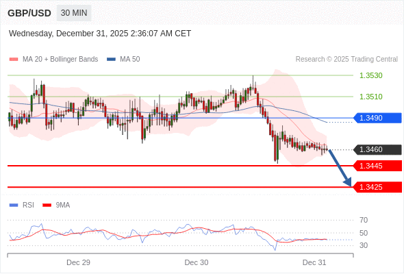 在 1.3490 之下,看跌,目标价位为 1.3445 ,然后为 1.3425 。