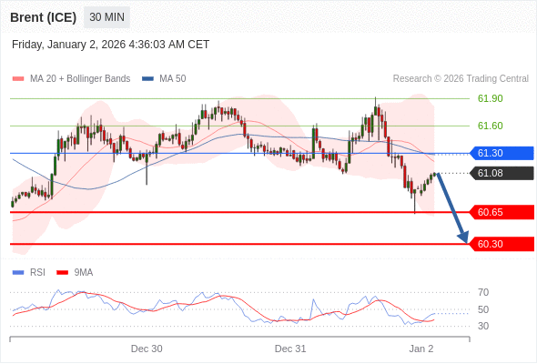 在 61.30 之下,看跌,目标价位为 60.65 ,然后为 60.30 。