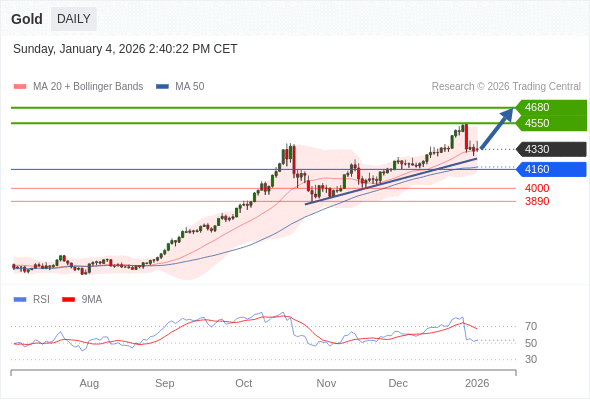 在 4160 之上,看涨,目标价位为 4550 ,然后为 4680 。