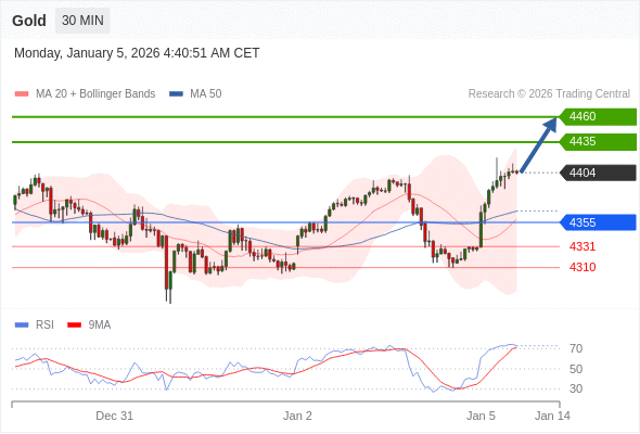 在 4355 之上,看涨,目标价位为 4435 ,然后为 4460 。
