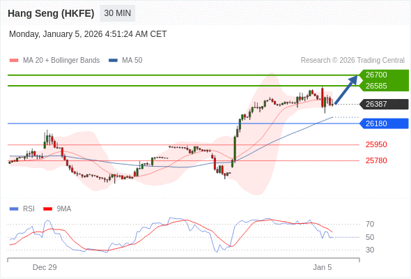 在 26180 之上,看涨,目标价位为 26585 ,然后为 26700 。