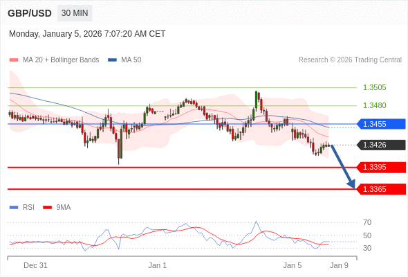 在 1.3455 之下,看跌,目标价位为 1.3395 ,然后为 1.3365 。
