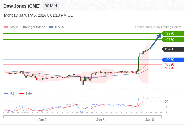 在 49060 之上,看涨,目标价位为 49760 ,然后为 49970 。