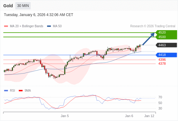 在 4418 之上,看涨,目标价位为 4500 ,然后为 4520 。