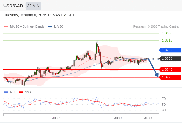 在 1.3790 之下,看跌,目标价位为 1.3740 ,然后为 1.3720 。