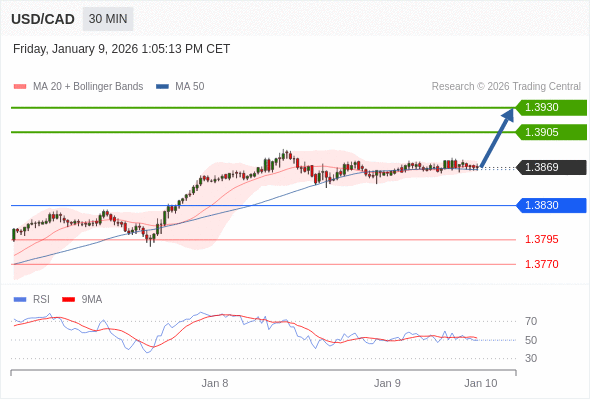 在 1.3830 之上,看涨,目标价位为 1.3905 ,然后为 1.3930 。