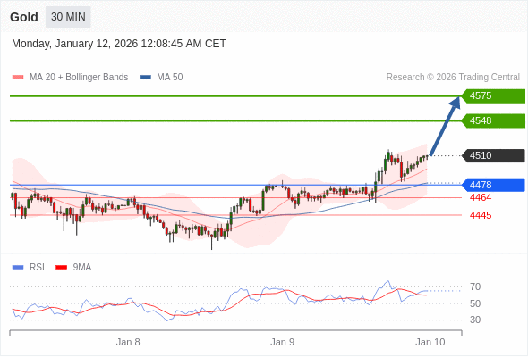 在 4478 之上,看涨,目标价位为 4548 ,然后为 4575 。
