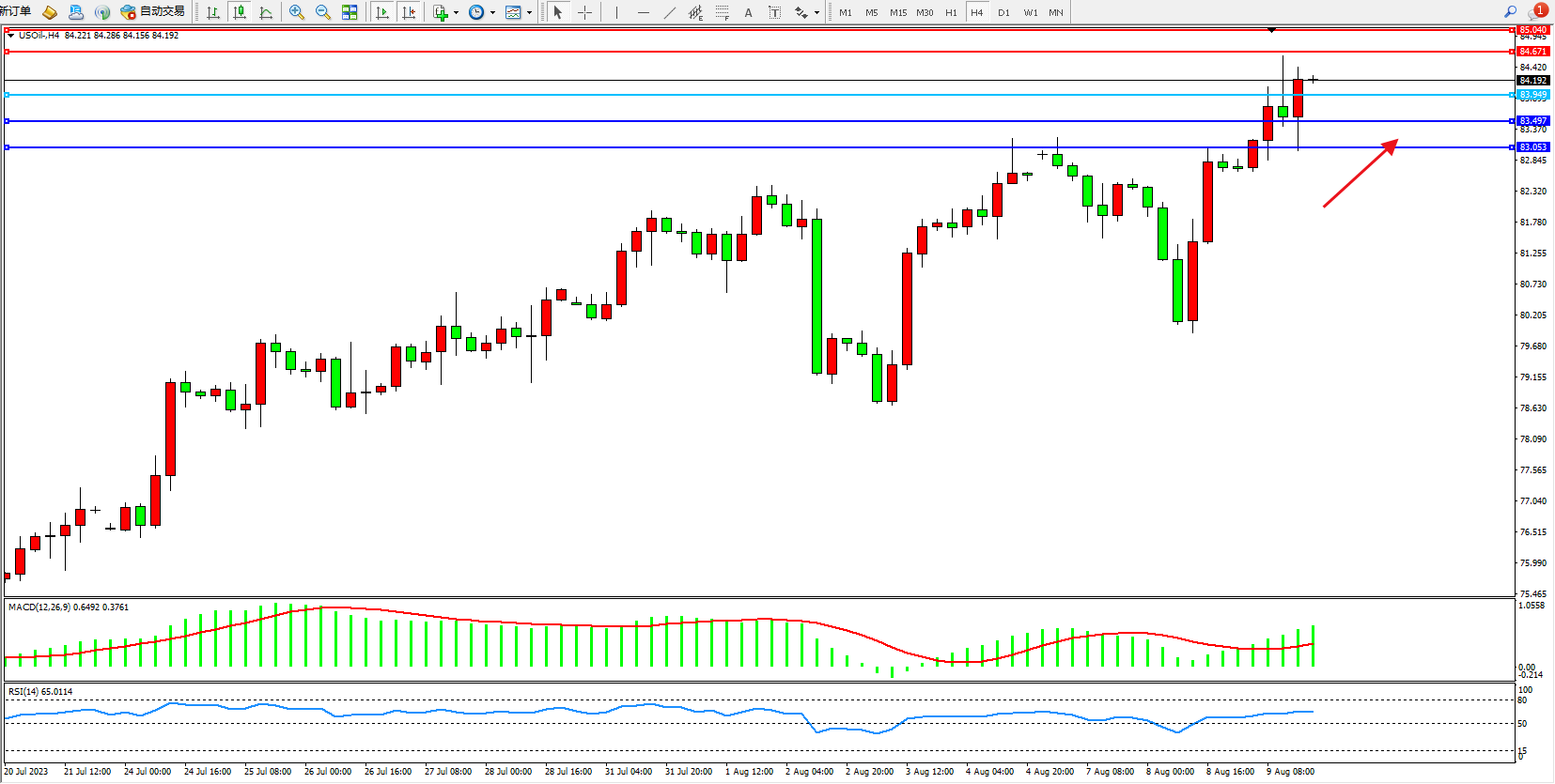 原油维持84.192附近震荡,美国至8月4日当周EIA原油库存 585.1万桶,预期56.7万桶,前值-1704.9万桶。EIA俄克拉荷马州库欣原油库存 15.9万桶,前值-125.9万桶。