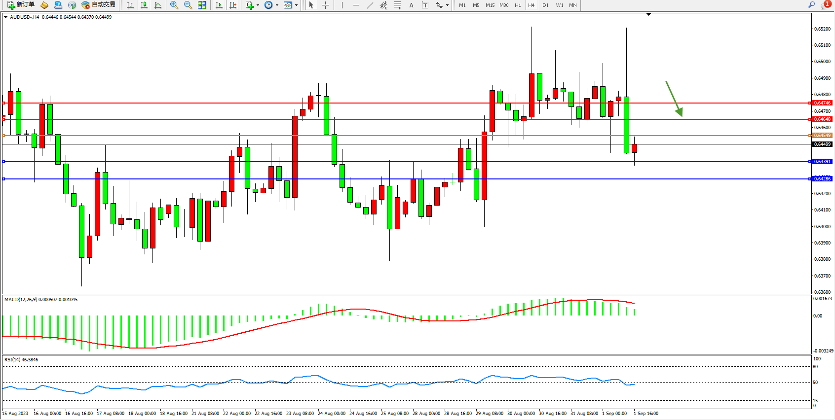 阻力位:0.64648 0.64746