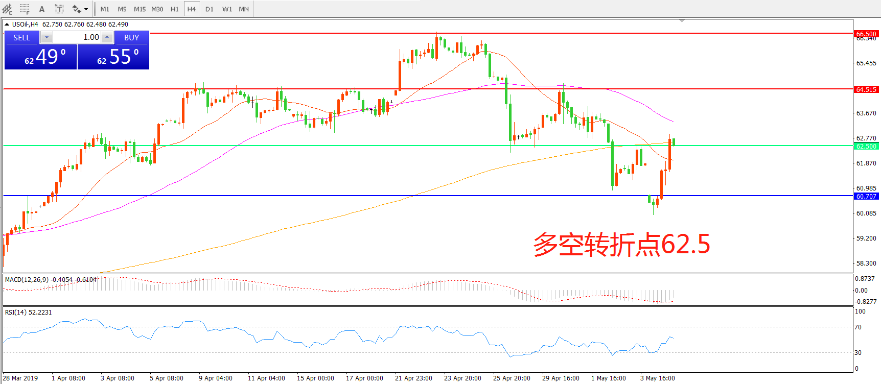 多空转折点:62.50