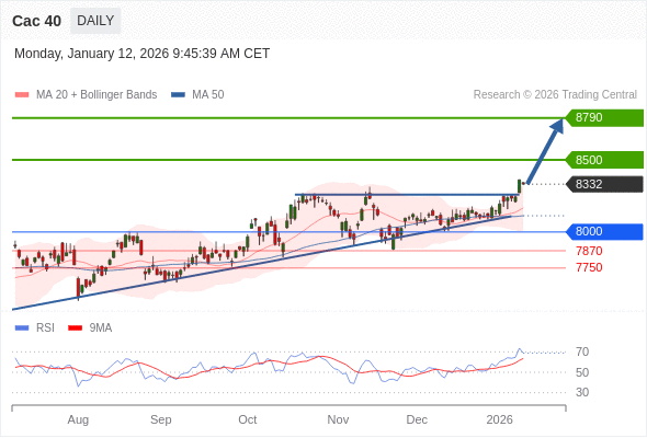 Cac 40 短线: 上升趋势。