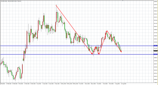 周二(8月8日)因中国公布的贸易数据令人失望,美国银行业的信用评级警告,以及一些疲弱的企业财报导致部分资金逃往美元和美国国债。美指创两周来最大单日涨幅,现货黄金震荡下行失守1930关口,创近一个月来新低,最终收跌0.58%。