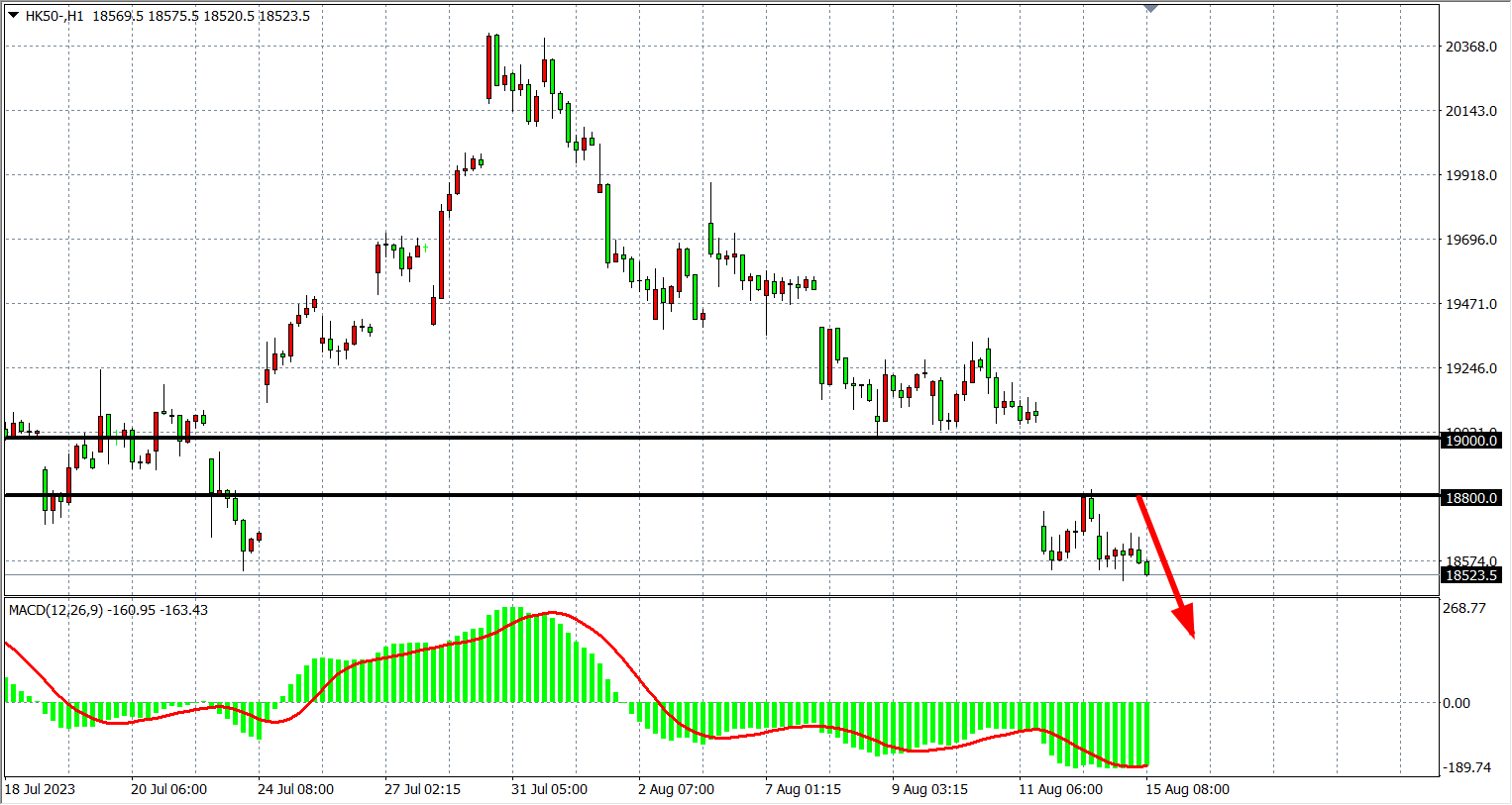 4小时图看,恒指在1900关口之下运行,MACD量能继续于零轴下方,阻力继续关注18800-19000,支撑关注18500-18300附近。